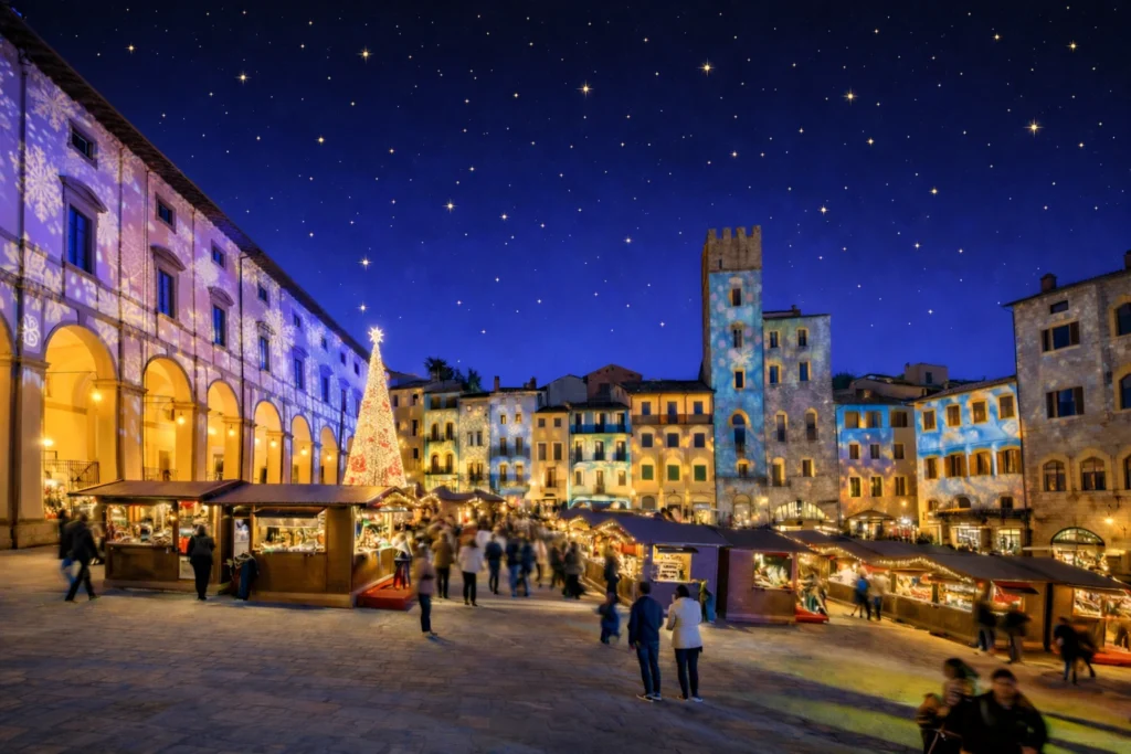 If you are staying at Villa Vianci in late autumn or winter, there is one seasonal reason to choose Arezzo: Arezzo Città del Natale. The historic centre, and especially Piazza Grande, becomes a Christmas stage with markets, lights, installations, and a strong “event-city” energy that feels unusually complete for a Tuscan town. It is widely considered one of the most significant Christmas events in the region, and it works well as a day trip because it blends atmosphere with real architecture, rather than replacing the city with a temporary fairground.