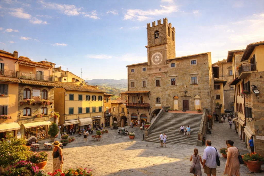 If you want a nearby excursion that shifts the day from major city monuments to a tighter, more “archaeological plus Renaissance” focus, Cortona is an excellent choice. The key stop is the MAEC, housed in Palazzo Casali, where the highlights include the Tabula Cortonensis and the celebrated bronze Lampadario etrusco, two objects that make Cortona’s Etruscan layer feel immediate rather than abstract. For painting, the Museo Diocesano is a genuinely high-level visit, with Beato Angelico’s Annunciation and works connected to Luca Signorelli and Bartolomeo della Gatta. Finish at the Fortezza del Girifalco for a panoramic walk and a different sense of the city’s stone geometry.