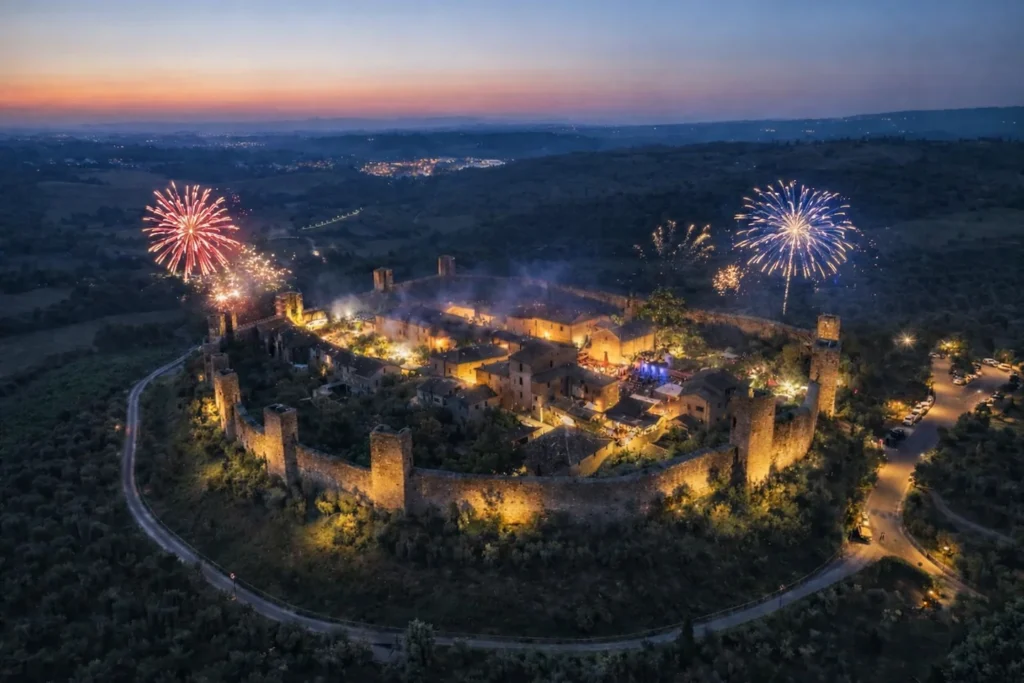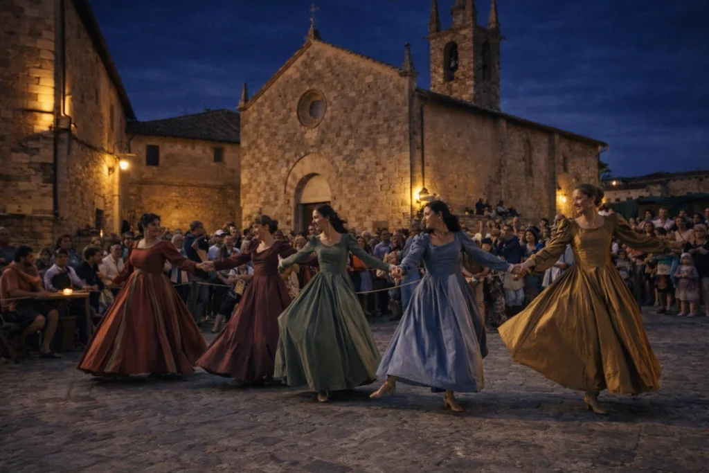 Monteriggioni di torri si corona is one of the most atmospheric “festival evenings” near Villa Vianci: a walled village that becomes a living medieval set, with costumed performers, craft stalls, music, taverns, and street theatre inside the walls. The setting does most of the work for you, because Monteriggioni is already a perfect stage: compact, enclosed, walkable, and dramatically lit at night. For guests staying at Villa Vianci, it is ideal because it feels special without being complicated, you can arrive for the late afternoon, enjoy the build up, and stay into the evening when the borgo really changes mood.