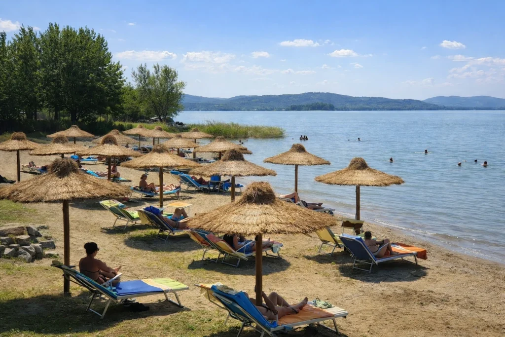 Then decide which Trasimeno mood you want: swim, walk, or islands, and build the day as a sequence rather than a checklist. If you want the simplest summer version, choose a proper lakeside lido and treat the morning like a calm beach chapter. Trasimeno is ideal for families because the day can stay gentle: shallow shoreline areas, easy breaks, and shade stops. If you want a very practical swimming setup with services, one well-known option is the Lido di Tuoro (Punta Navaccia), which also positions you perfectly for a second, more cultural layer later.